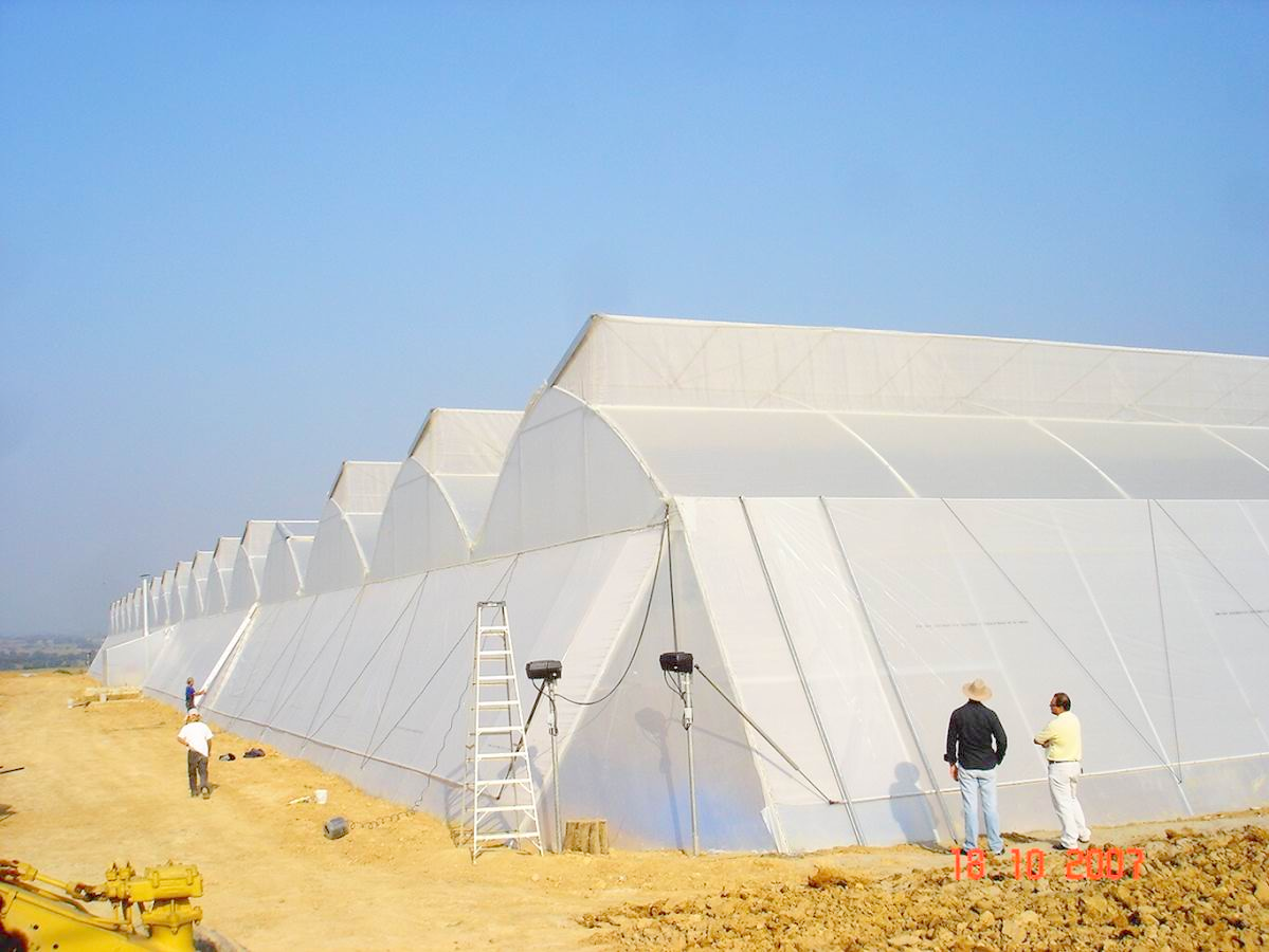 This model Greenhouse presents a number of variations depending on the climate zone and type of crop. Under extreme weather conditions this model Greenhouse constructed of, 2“and 3″ galvanized pipes would be the most suitable. For moderate climate conditions the best choice would a greenhouse constructed of profiles.